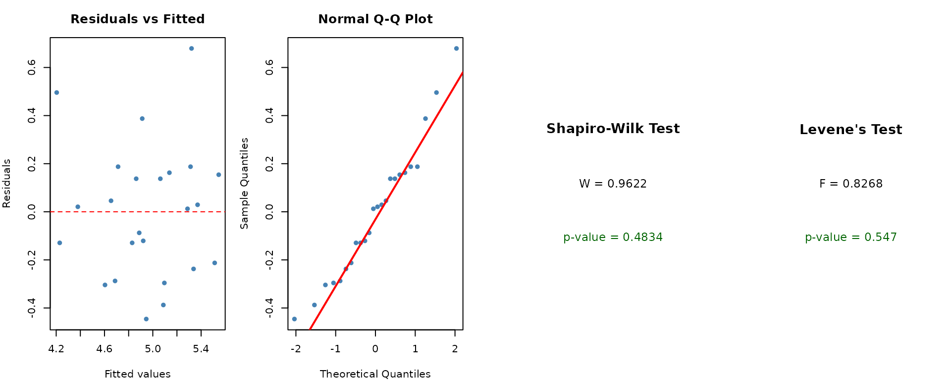 - Tukey HSD for pairwise treatment comparisons.