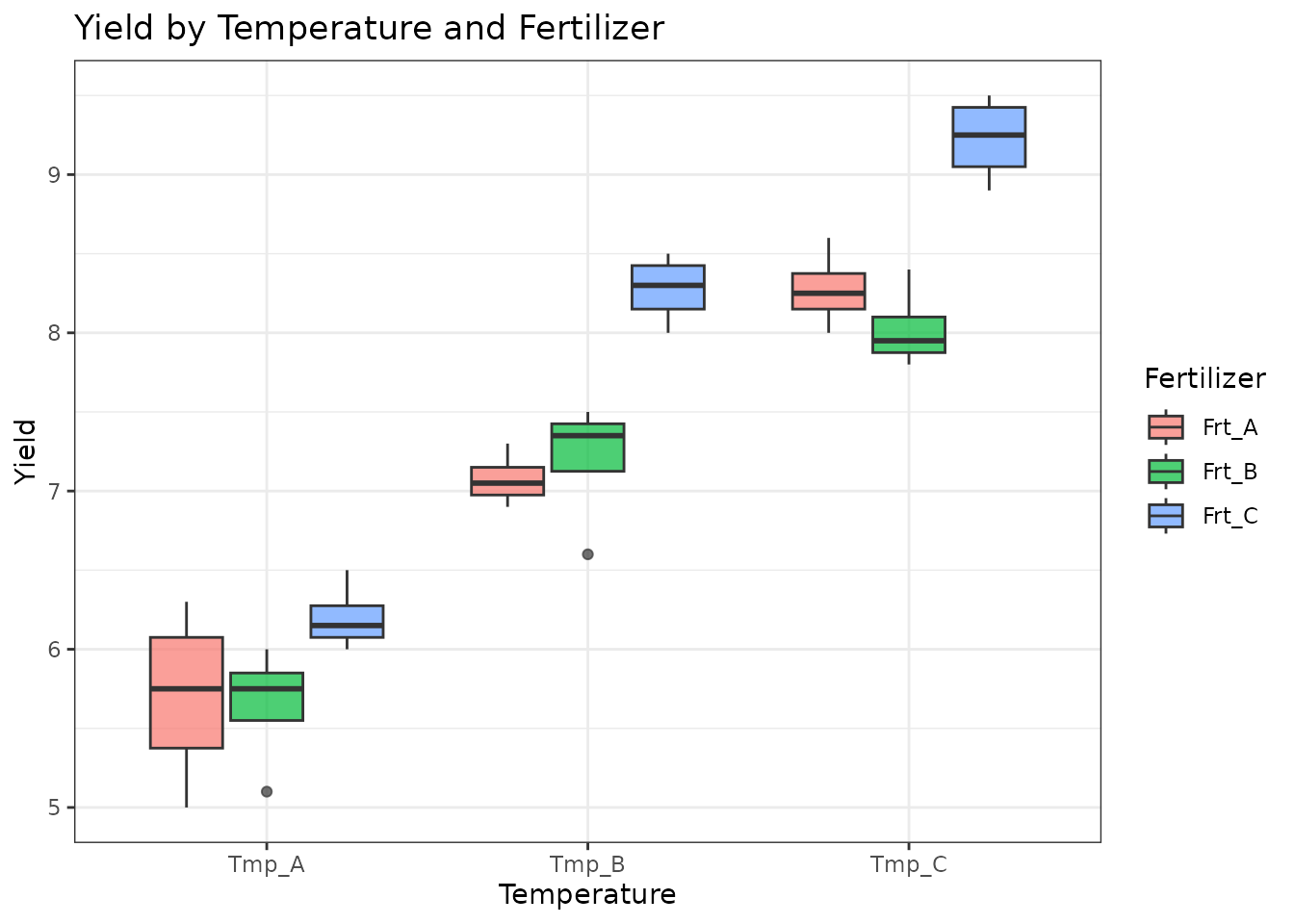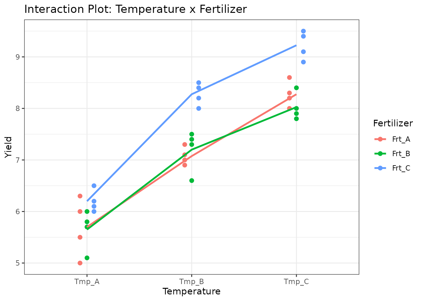 #> Fit: aov(formula = Yield ~ Temperature + Fertilizer, data = factorial_data)